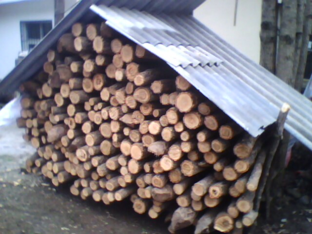 最近爸爸要种菌棒,所以买了人家100多根棒来种,但菌棒都放在后面的山坡上,运都运不回来,这可犯了愁,爸爸就向大爸借了一辆架子车,几根几根的往回拉。看到爸爸这样的辛苦,我们全家都出动来帮助爸爸了。