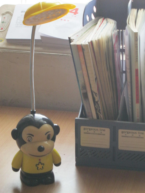 我之所以对台灯梦寐以求是因为晚上我很怕黑,有了它,我再也不用怕了。当然,这是次要的。最主要的是因为我要用它来夜读。我最喜欢夜深人静的时候读书了,可是家中的灯光太暗况且又影响家人的休息。但有了“金丝猴”这个朋友的陪伴,我的烦恼就解决了。