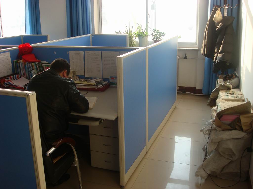 这就是我们教师办公的地方,它吸收了企业化管理的模式,为每位教师提供了一个独立的空间,教师在里面可以安静地做自己的事,尽量少受别人的打扰。