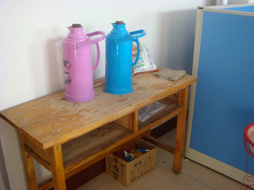 办公室里另外必不可少的就是这几个暖瓶,老师们每天上课非常辛苦,有时要连着上三四节课,课堂上又得口不停息地讲解,等下课时早已是口干舌燥,回到办公室,能喝一口热水真是舒服 。