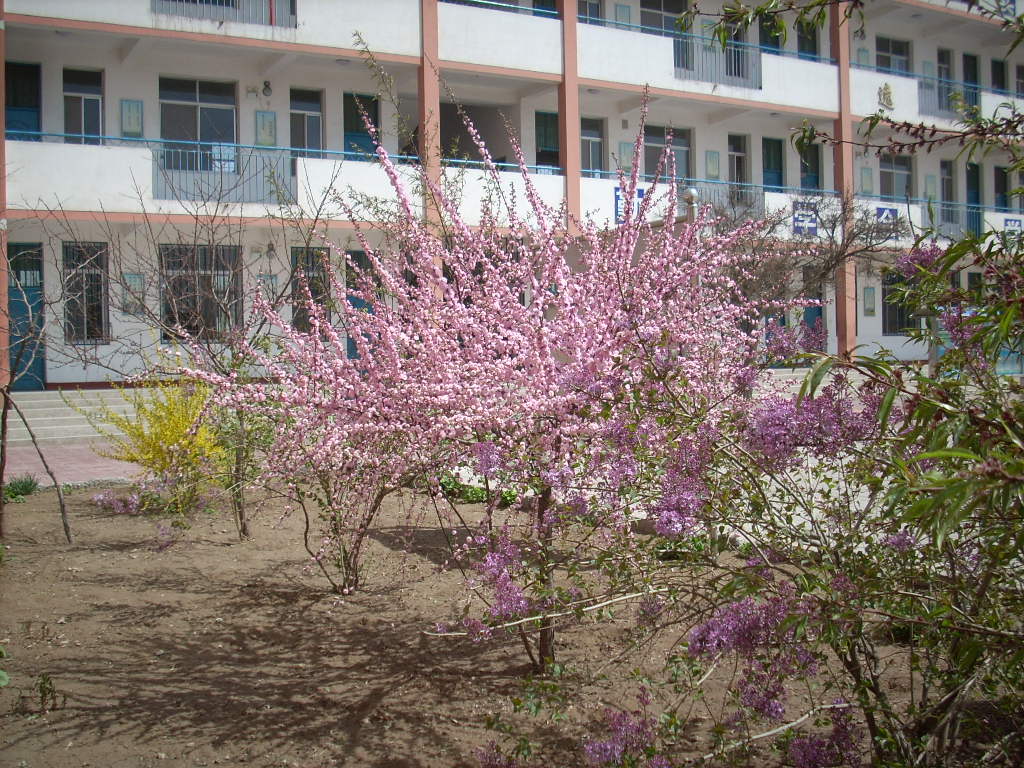 在我校的综合办公楼前,有一棵挑花树,每年的春天,枝头总是花满头,从这里经过的人,都要看几眼,欣赏一番,可是,今年 刚盛开的桃花被这场春雪"糟蹋"了,尽管如此,走近一看,桃花还依旧面红。