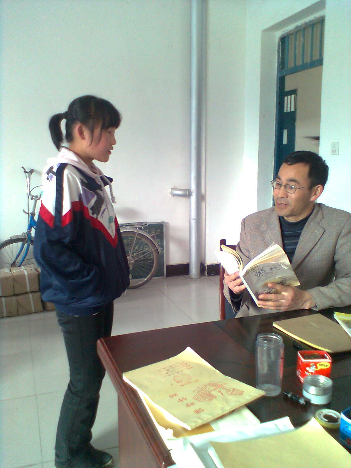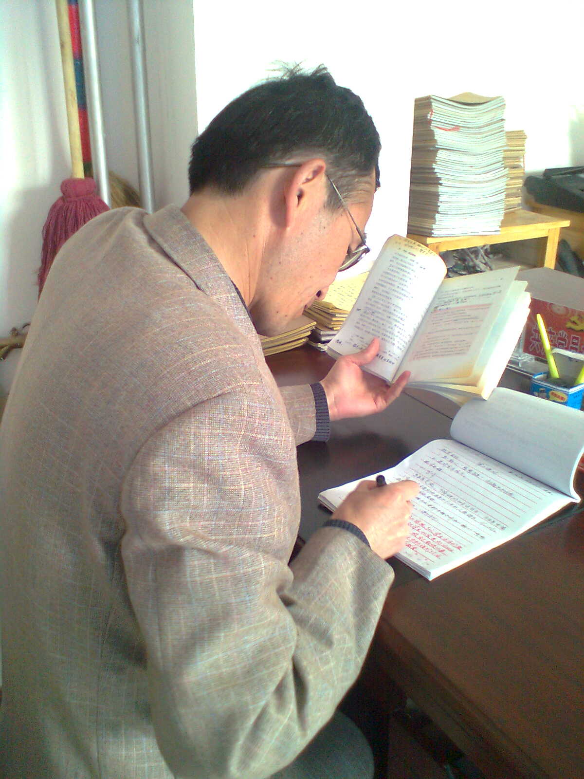 "书是人类进步的阶梯",是啊,有空闲时间,王老师总是看书,他看过的书,上面圈圈画画,批注,读书心得······每日都可以看见他在办公室里读书的身影一个让人敬佩的身影,一个消瘦的身影,这让人时时浮现在眼前。