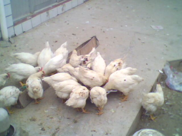 刚开始把它们放到院子里的时候,它们跑来跑去,第一次来到陌生的地方,未免有些吃惊。他们集中在一起,呆呆的站在那里,后来熟悉了,便开始打闹起来,你啄我,我啄它,玩得很开心。这时,爷爷把食倒在盆子里,它们便争先恐后的扑到盆子上面狼吞虎咽,谁也不让谁,真是六亲不认哪!