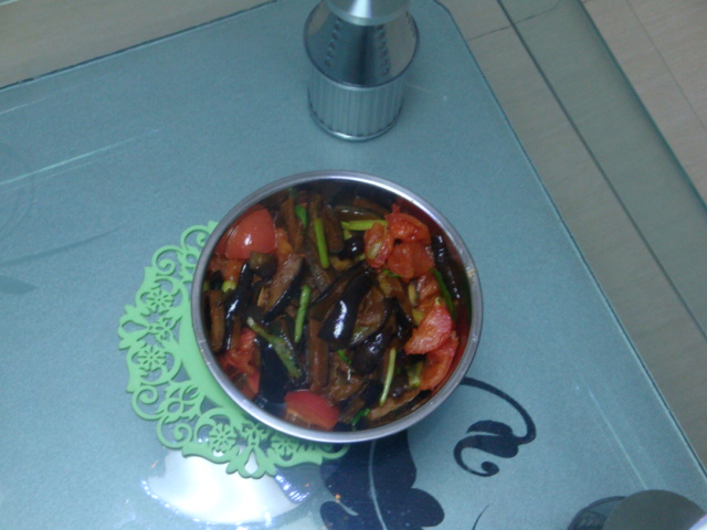 别光看这道菜的样子好看,那味道也是美味极了的。新鲜的茄子肉,带着一点儿柔,除了那茄子本身的香味外,还有一股淡淡的焦味儿与甜味儿。另有那西红柿的酸甜味儿与蒜苗的鲜味儿在里面,口味独具一格,连我家的大厨——妈妈,都做不出来。