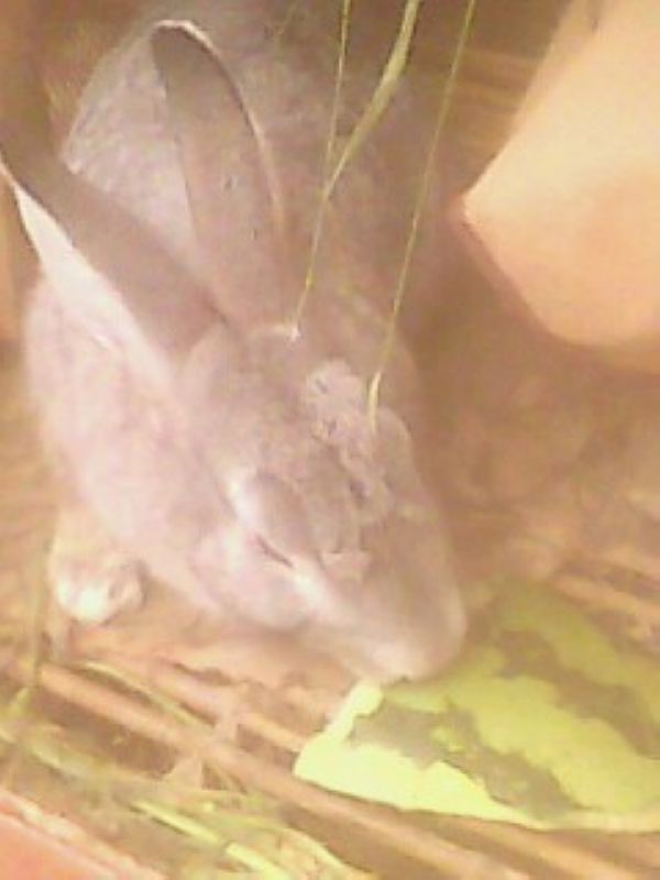 小兔子刚来时,显得没生气,不过在我的精心照顾下它们变的神奇多了。有一次,堂妹拿着萝卜喂它,它看见堂妹这张生面孔吓得赶紧躲到墙根里了,像一个小绒球。它看见萝卜有点蠢蠢欲动一直盯着萝卜看,好像在说:"好姐姐,你快把萝卜给我们吧!"堂妹见它这个样子笑得前俯后仰。
