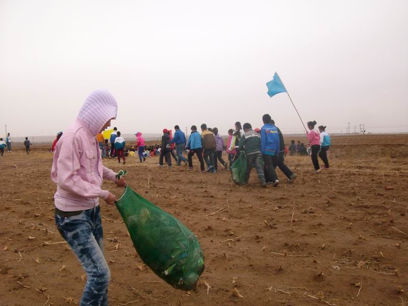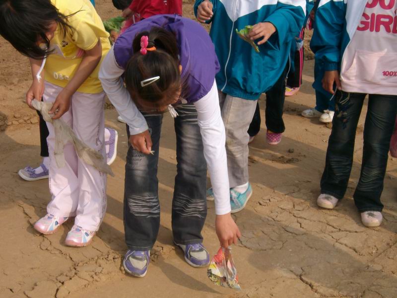 我们三个一组,五个一群,帮垃圾找到一个好的归宿。刚开始,我觉得不费吹灰之力就能干掉,干了一会儿,才觉得"敌人"的来头还真不小,要想真正消灭它们,可得费些功夫。同学们都汗流浃背,口干舌燥。我们一组在草地上作战,由于昨天刚下了一场雷阵雨,洼地处仍有一些积水,稀泥土会让脚沉下去,我们不得不穿上"高跟鞋"应战。我们团结协作,并肩作战,克服了一个又一个困难。