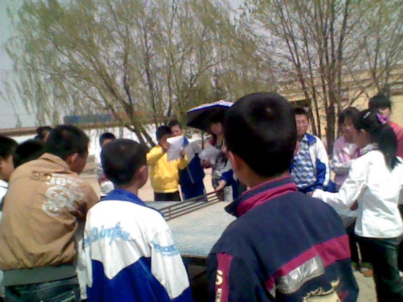 东边的乒乓球台前,正好是我们班和八一班的比赛当我看到场上比分正好是十平时,我的心里十分的忐忑怕我们班输了,场上的人也小心翼翼的打着。乒乓球台前的人也心中忐忑不安大声地喊着加油,终于我们班赢了,大家都欣喜若狂。