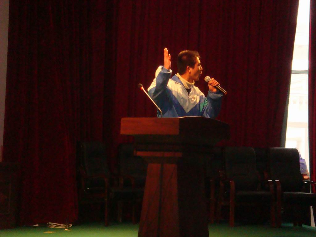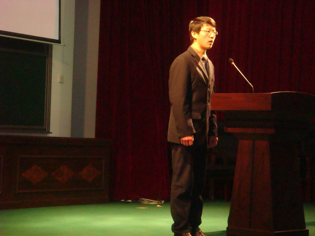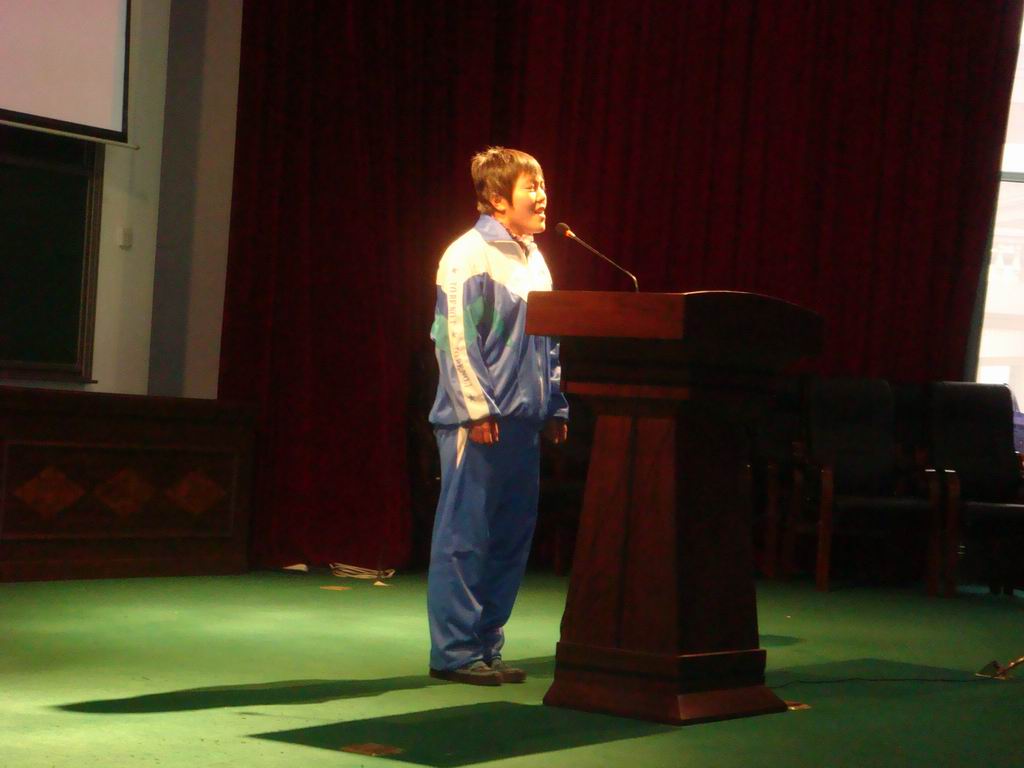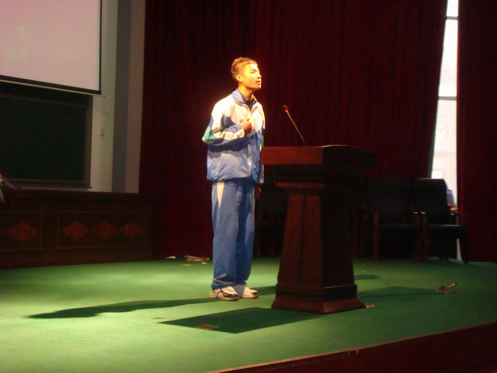 " 我们都有共同的家园,都有共同的责任也有共同的义务---爱护我们的家园,节约我们的资源"。他毫无紧张可言,自信十足,他激情的话语打动着在场的每一个人,这让他发挥的更加自如了。