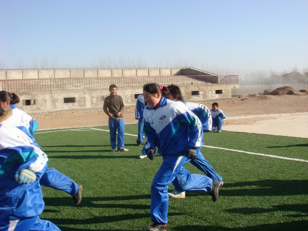 男生们在那边玩的不亦乐乎时,女生也不服气了,也跑起了接力赛。与男生比起了赛,这下诺大的操场上更显的热闹了。校园中充满了我们的欢声笑语。耳旁传来一阵阵的喝彩声"加油!加油!"。