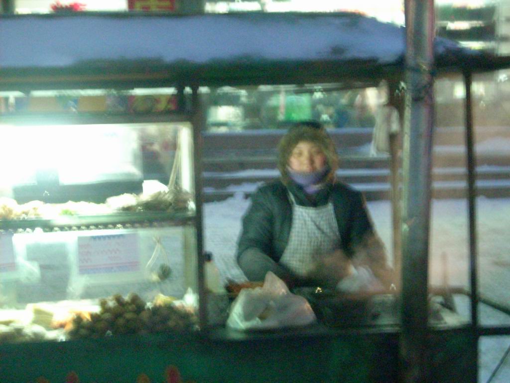 从早到晚,那些人一直再那里买着烧烤,饿了就去买一分凉皮或几个饼子随便一吃,真辛苦呀!看那橱柜里的东西还不少呢。有火腿、有酥鸡、有牛排,还有其他的小吃,看了都让你流口水。