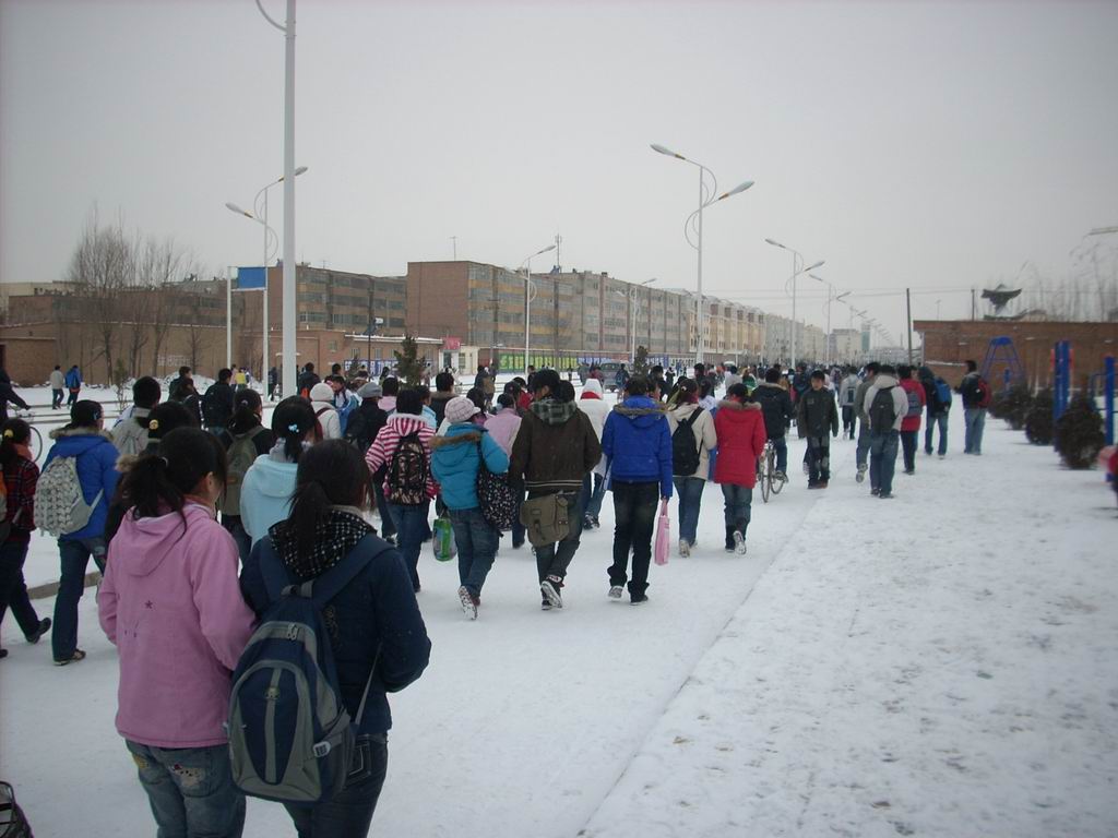 我们学校住宿生非常多。回家是也成群结队的, 像一帮没有受过严格训练的"新兵蛋子"一同去打仗一样,浩浩荡荡,毫无秩序,踏平校园,进军校门口,那里等待着我们的忠仆------公共汽车。