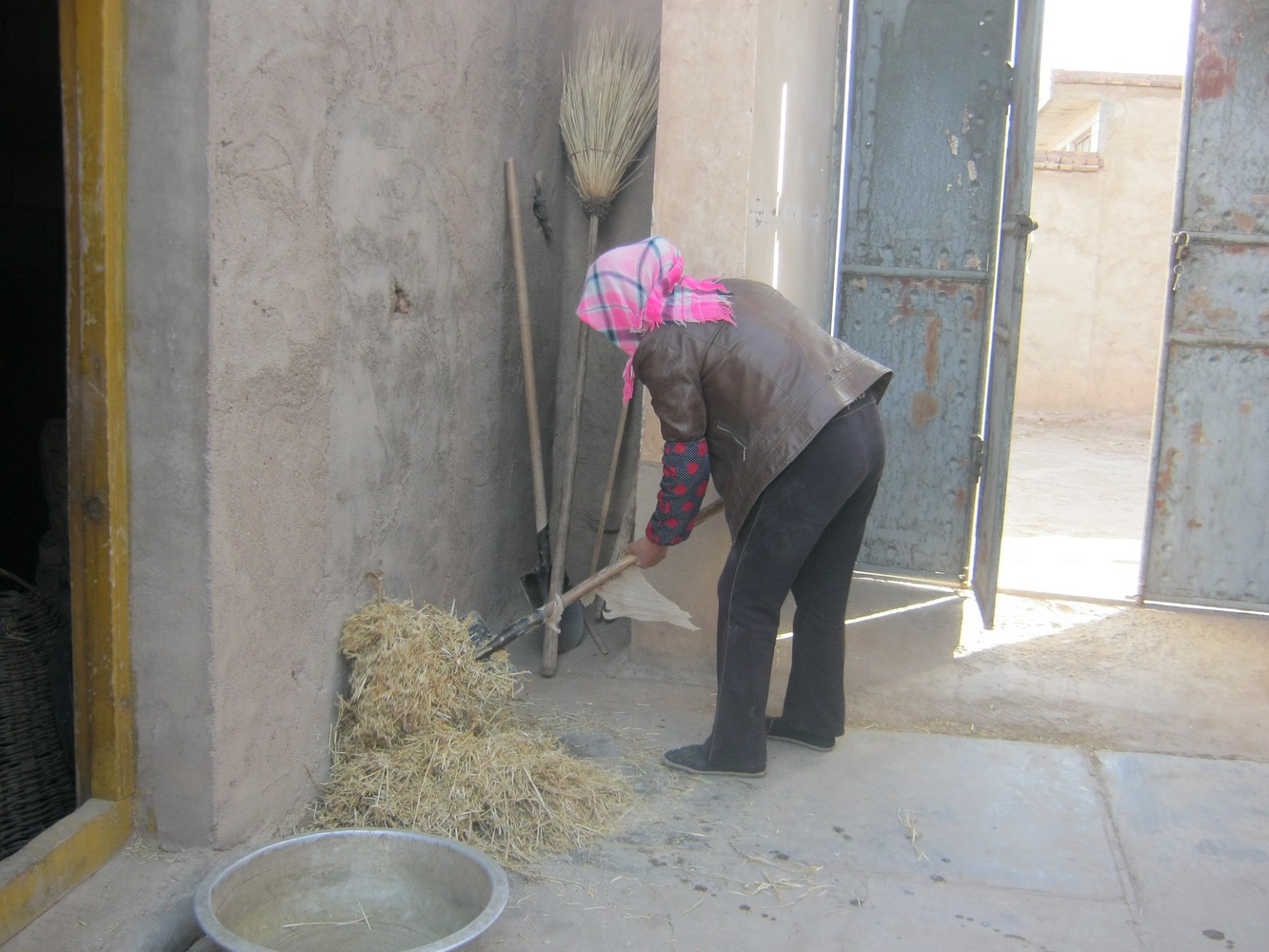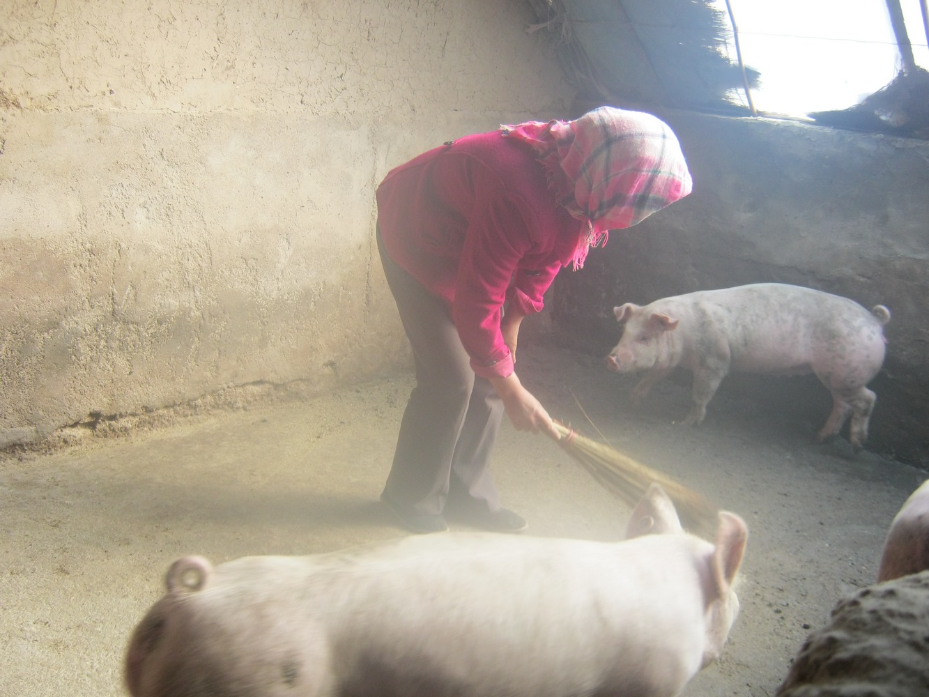 从早上六点多开始妈妈就工作了,因为家里养的动物多,先从叫着最凶的猪开始,喂猪不是最重要的,,主要的是打扫猪圈,因为我家养的是品种猪,不像土著。不把猪圈打扫干净猪很容易得病,就这个工作要工作一小时,其次是喂羊,羊不只是喂草,还要为饲料,对于那些怀了小羊羔,挺着大肚子的模母羊们还要特别照顾,要单独给它们喂玉米,还要操心小羊羔,小猪儿奶吃了没有,水喝了没有,这几天有没有异常反应等等。这些家畜们吃完了,就该面对家中的零碎活了,打扫院子,擦家具等,家务活都干完就快到中午了,还没有来得及休息,那些长着嘴的东西要着吃午饭了,这不是喂猪、喂羊的一轮又开始了,直到晚上10点,我的妈妈甚至连个好年也没过。