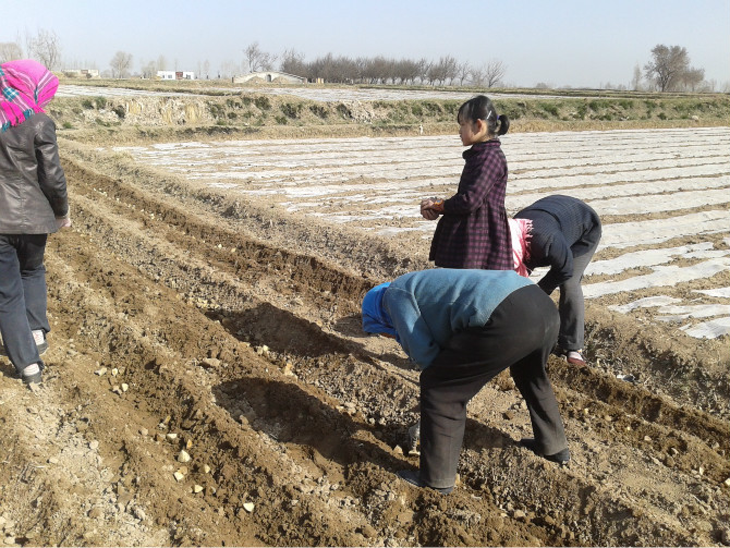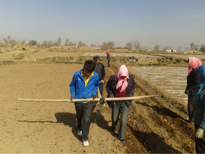 我们也不例外,这不一大清早就来到了地里。这首先要做的就是开沟,我和妈妈拉着犁,大伯扶着,这个看似容易,其实是很费劲的,开好沟后,接下来就是把提前准备好的洋芋苗倒在沟里,然后再把苗摆放好。妈妈和婶婶们在摆苗,我和大伯则是用铁锹在苗上盖土,等这一切都干完后,接着就是往盖的土上撒化肥,化肥既不能多也不能少,少了洋芋长不大,多了会把洋芋烧坏,所以这个活我是干不了了,只能在一旁看着妈妈和婶娘们干了,施完肥后,都快中午了,大家也累了,就休息了一会,喝口水。
