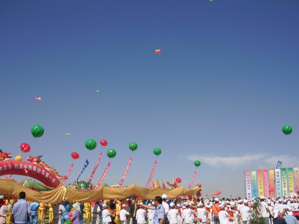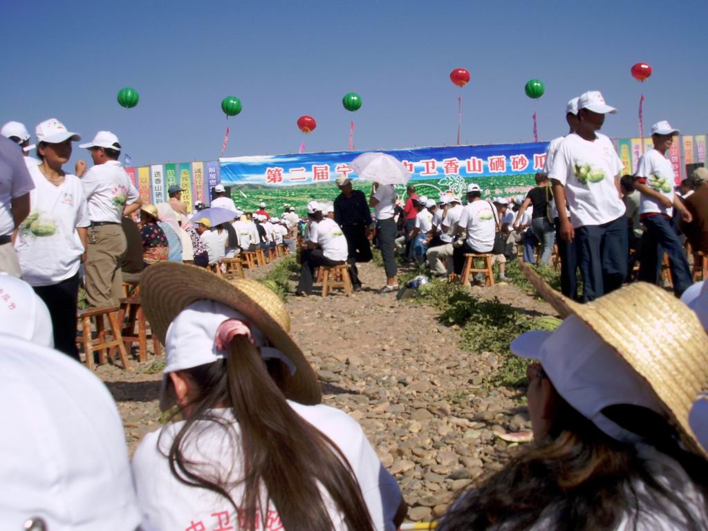 今天是个好日子,宁夏中卫香山第二届硒砂瓜节今天上午在中宁县鸣沙镇二道渠硒砂瓜生产基地隆重开幕。现场人山人海,大家从四面八方汇集到这里,来参加这个对中宁经济有非常重要意思的盛会。还来了不少区、市、县的领导们,听说还来了中央的领导,光小车就有上百辆呢,那可真是热闹呀!