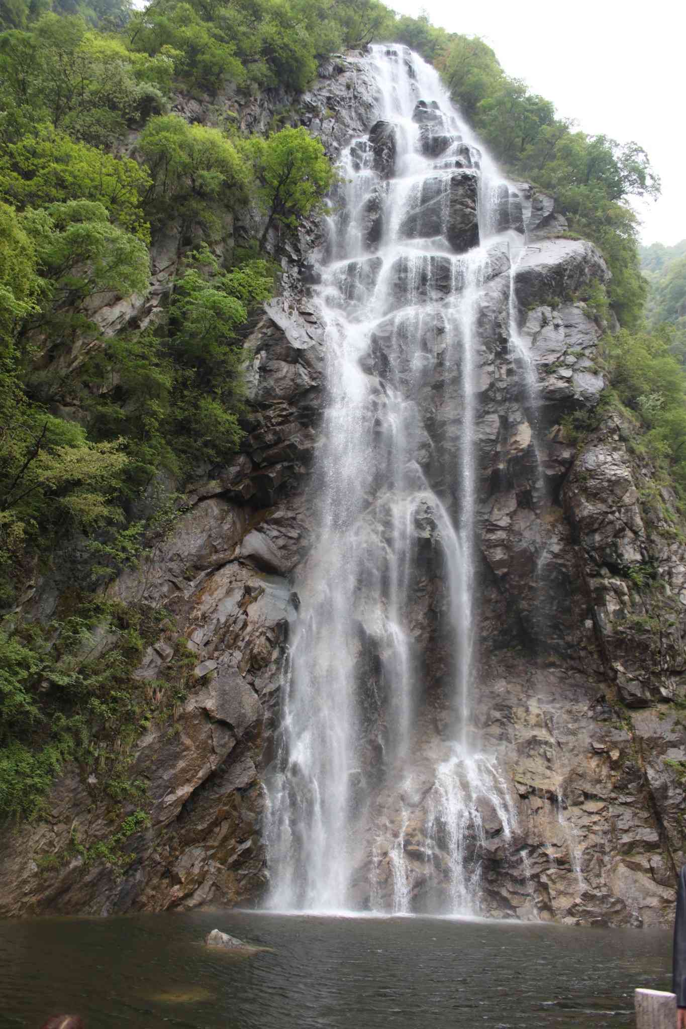 当车距汤峪口越来越近,太白山的影子便越来越清晰了。不知不觉中已经到了山脚下,向前后左右看看,"好高大,好雄伟啊!"使人不禁发出这样的赞叹。车向上山的方向驶去,坐在车上向外张望,两旁的树木翠绿挺拔,也有许许多多的树竟然从石头缝里钻出来,这生命力多么顽强呀!向上走,就到了铜墙铁壁。这里果然美丽,旁边是一条小溪,溪水清清见底,时不时还会看见鱼儿呢。中间的亭子顶上长着许许多多的茅草。。当离下一个景点还有一段距离时,就已听见"哗、哗"的流水声了,想必大家已经猜到了,这儿离瀑布不远了。没错,下一个景点就是莲花峰瀑布,远远看去,这条瀑布如同一条白色的丝带,给大山披上美丽的面纱。近看,水从高处流落下来,拍击在在岩石上,溅起许许多多白色的浪花,看起来就更美不胜收了。面对着如此美景,我忍不住拿起相机拍了下来。随后又上了车,经过泼墨山后又到世外桃源。是呀,这地方可真像世外桃源。潺潺的流水,弯弯的小路,芳香的花朵,有着这么迷人的景色,难道还不是一个世外桃源吗?"可能快要下雨了,我们得赶紧上山",叔叔的话引起了我的注意,对呀,天空看起来阴云密布,是将要下雨了。我们的车向山上驶去,向下看看走过的路,婉转盘旋,真不知道修建公路的人们是怎样完工的。向前看,忽然瞧见一块大石头上刻着"七女峰"几个大字。这七座高山果真像七个仙女般美丽而妩媚,好像在给人们讲述着太白山的传奇故事。车越往上走,坡越陡,弯路越多。面对着不停的转弯,我忍不住问,"这弯这么多,到底一共有多少个呢?"叔叔沉思片刻后,告诉我这些弯共有四十二道,这么多的弯呀!向窗外张望,我很惊奇:两旁的树咋都像死了呢,爸爸告诉我,这种树是每年发芽时脱一层皮,因此现在看起来就像死了一样我这才恍然大悟。当车到下板寺时,果然下起了小雨,这雨又给山舔了无限的色彩,山被雾笼罩着,更显得神秘无比。再往上走,就是小路了,车不能向上行驶了。下车后,一股寒气袭来,我不禁打了个寒战,难怪这里还有出租羽绒服的商店呢!真可谓"太白积雪六月天"。因下雨的缘故,我们没有上去。听人说,山顶上大爷海的景色才美呢!