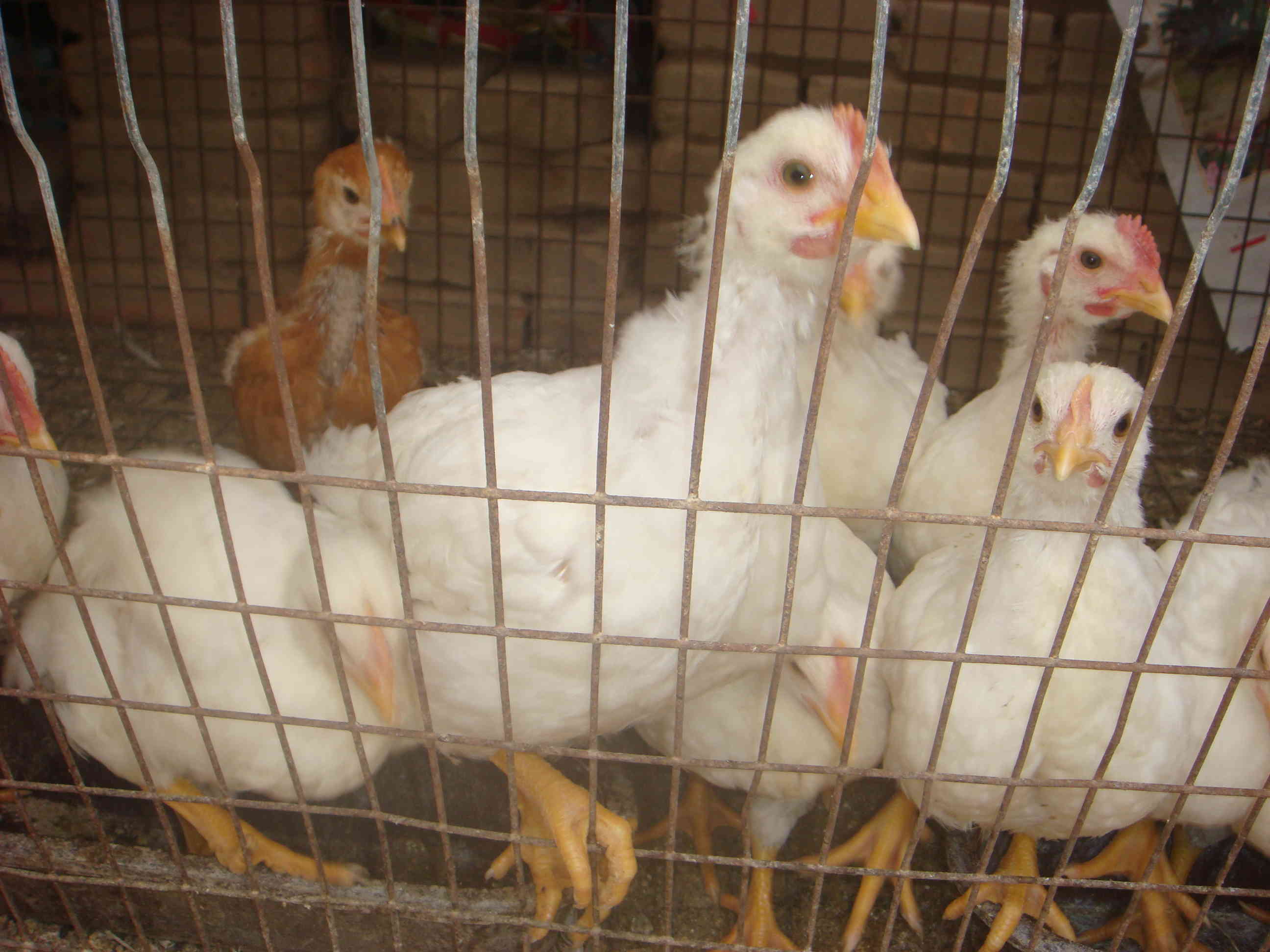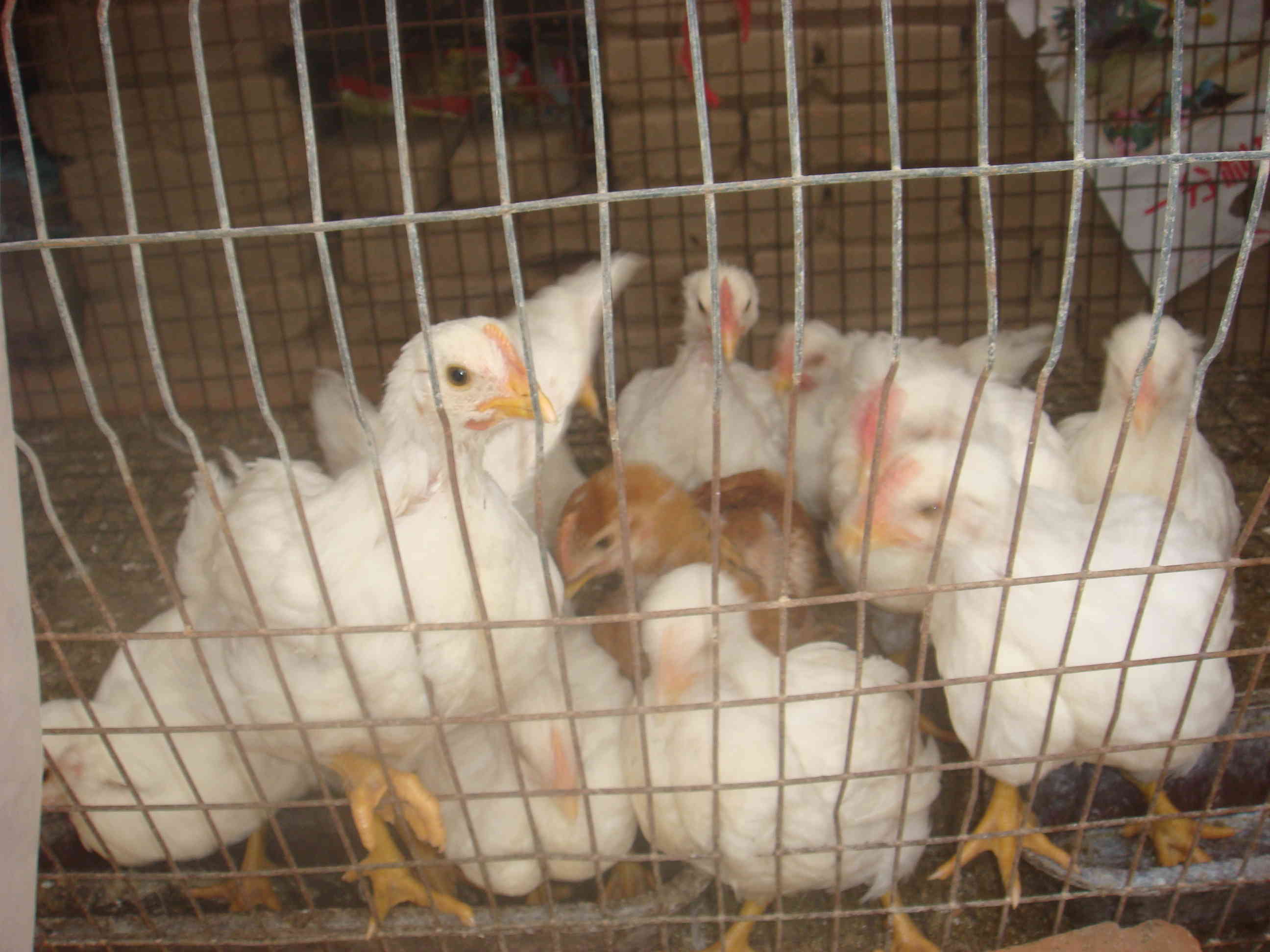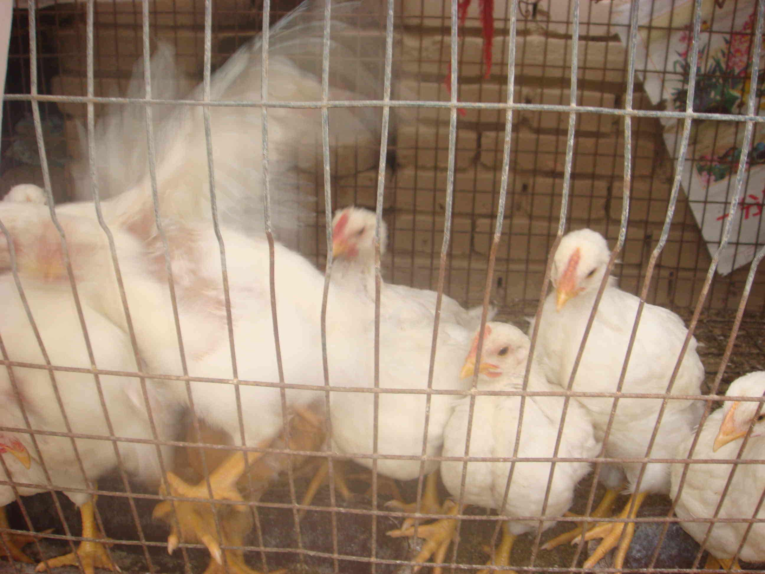 它们当中最漂亮的就属那些白色的小鸡,它们长有一身雪白的绒毛,特别是红红的锯齿似的鸡冠和那白中透绿的脊梁,显得很威风。