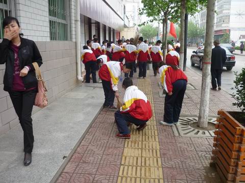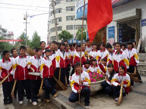 上完第一节课,我们端着凳子来到校园,团员宣誓和表彰大会庄严而简短,但韵含的意义却深深地烙在我们第一个人的心里。举行完仪式后,学校组织我们班和五班学生一起上街义务劳动。