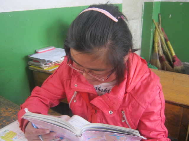 在我的眼里,她总是很孝顺的同学,做任何事都在顾虑父母,很少让父母操心自己。她总是很俭朴,从不乱花父母的血汗钱,总是帮父母亲干活,替他们分忧,是个典型的孝子。在学校,她也是一个听话的好学生,虽然学习不是非常好,但她聪明、好学,很喜欢看书,因此也就成了典型的"书呆子"。看!着是谁?不用说,肯定又是她在捧着一本书看了,她看起书来,可真的到了废寝忘食的地步,即使发生世界大战,她也未必能察觉。