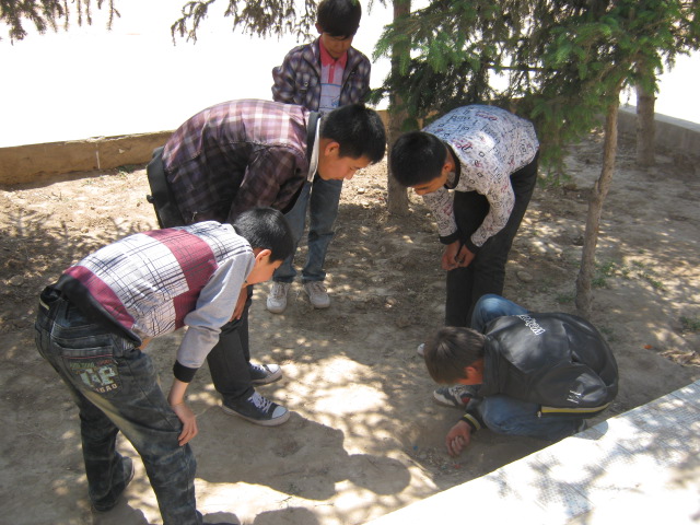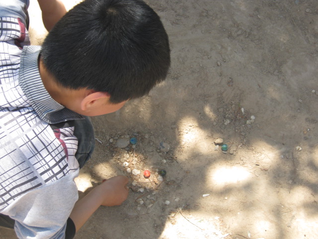 你看我们班的这个同学聚精会神的样子,哪里是在玩游戏,简直就是在干一件伟大的事业,这个时候似乎整个世界都不存在了,他们的眼里只有眼前的玻璃球。这个游戏带给了他们无限的快乐。