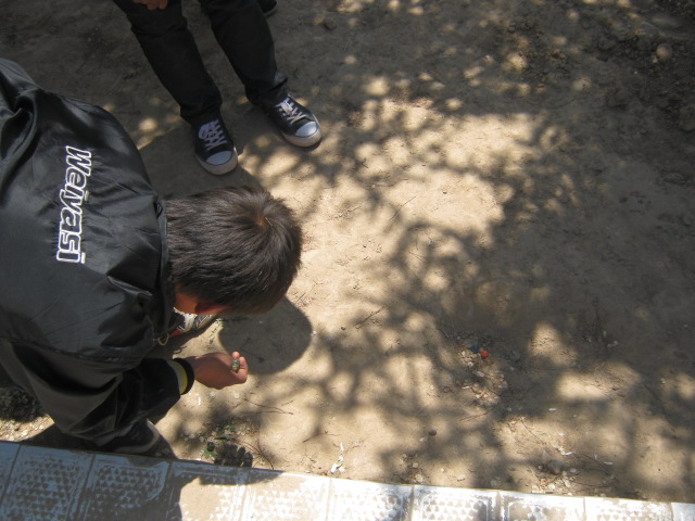 各种颜色的玻璃球放在那个土地上格外的显眼,但是我真搞不懂男生为什么热衷于这个游戏呢?这个游戏又不能锻炼身体也不能提高智力,最起码我们跳皮筋还可以锻炼身体呢!
