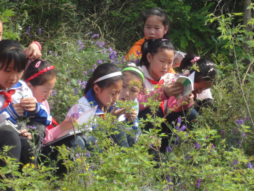我们来倒山脚下,只见到处都是一片郁郁苍苍、绿油油的景象,还有一些不知名的小花。微风吹来,我们闻见了麦子的香味。我们来到了一个平地,那里树木茂密,有丝绵树、松树······王老师觉得这是个朗诵的好地方,于是我们就开始朗诵了。