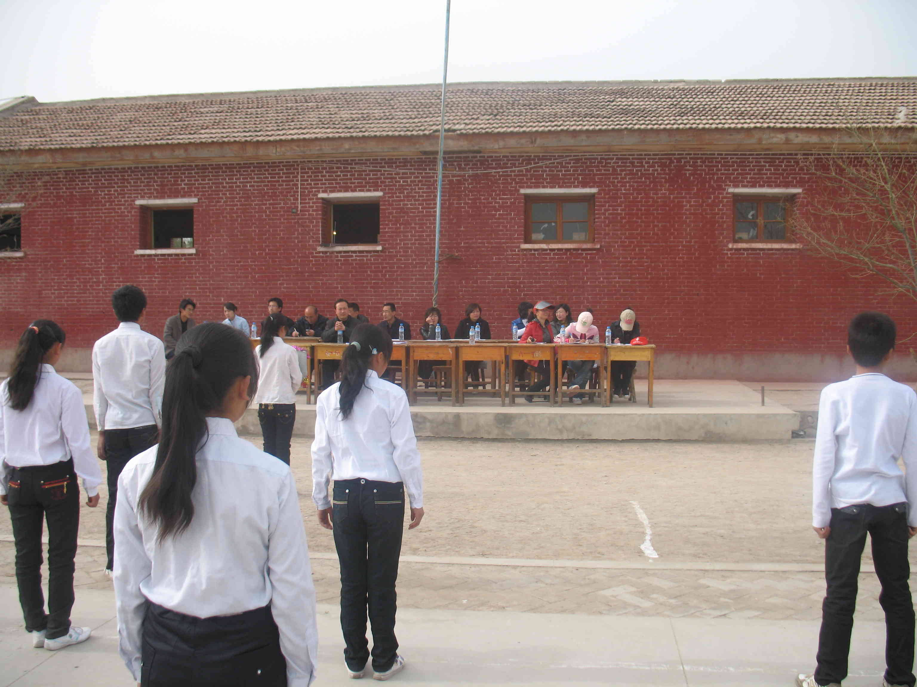 首先,校长以及其他领导人读了宣言。随着一阵清脆 的哨子声,队伍依次入场,那整齐的脚步声,不仅让人浮想联翩。