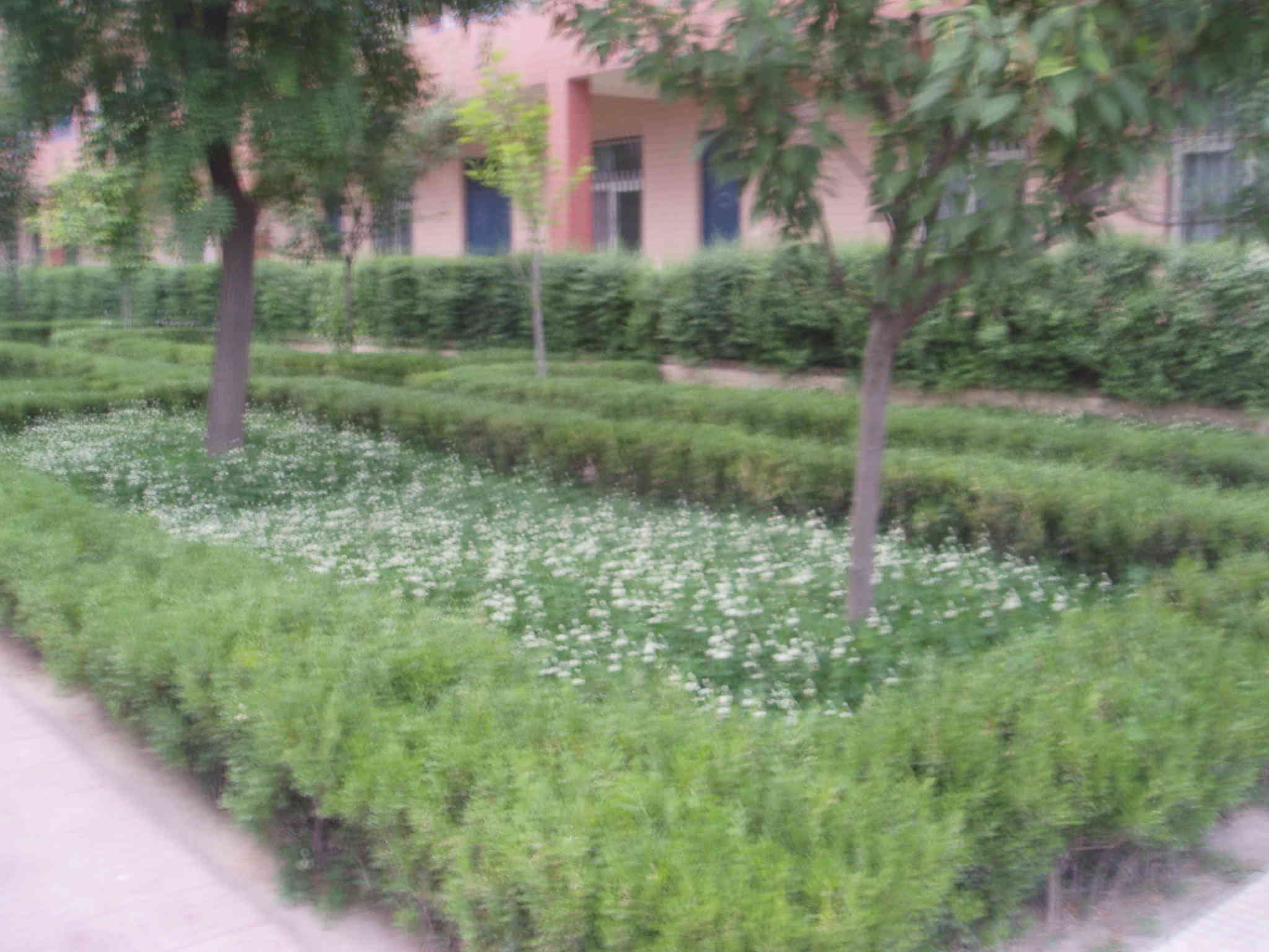 在这校园里,就在学校的另一侧发现了一个很美丽的景点,在这里有三叶草,也有用小树剪出的小动物,在这里树上的花都谢了,绿油油的树叶在树上挂着,树下的周围是一个小花坛,这棵树就在这小花坛中立着,小小的范围都是一些小花,白色地颜色看起来很美,大家如果不仔细看,还真看不出这里的艺术,这就是艺术师给校园加的一道风景,在这里可以让你感到心旷神移,在这里只有风景等你去感受,有新鲜的空气等你去用你的心灵去感受一下,在校园里也有在外的美好风景。