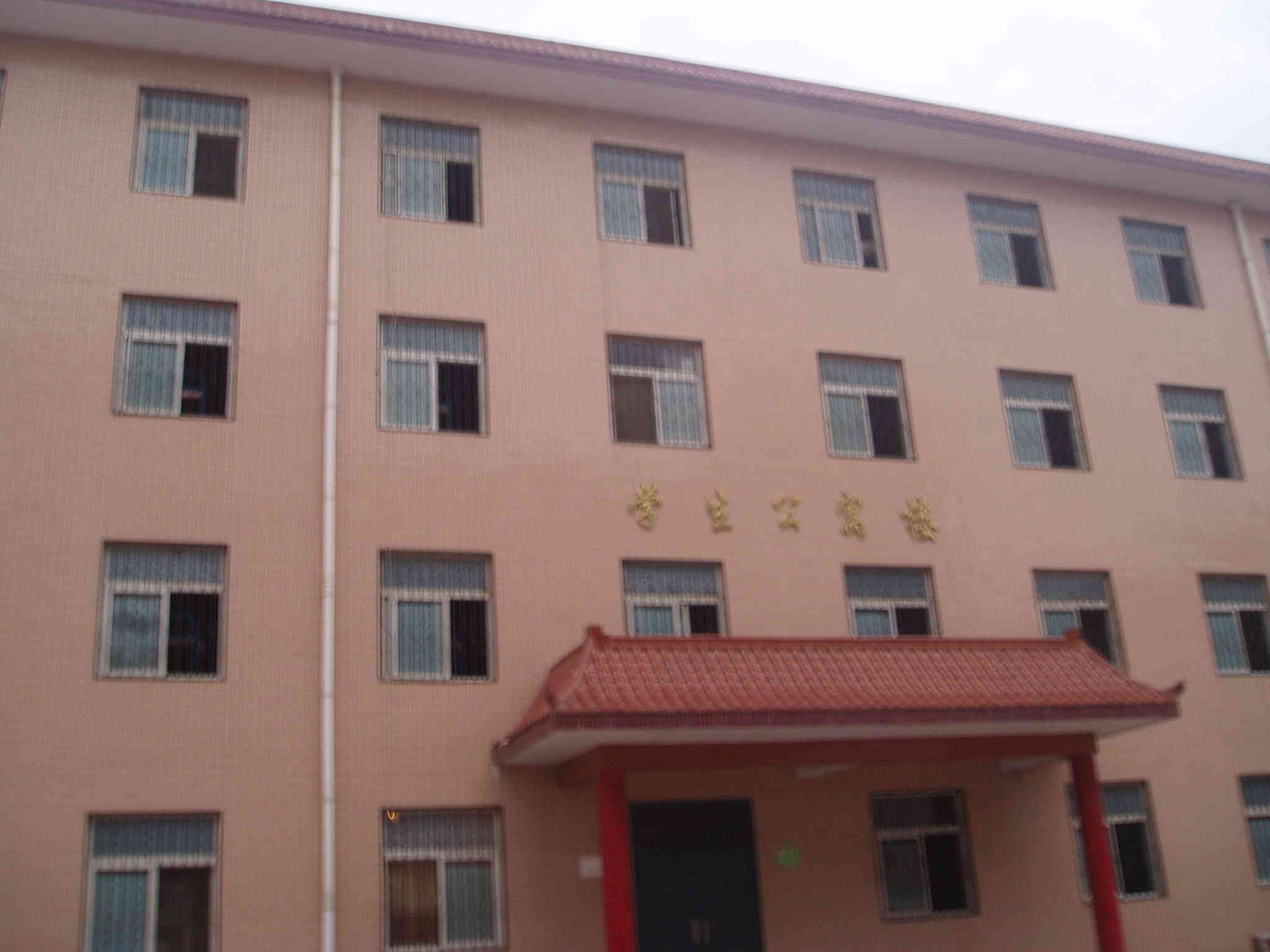 我到了另一座楼的一侧,从下向上看,上面是一个小半圆看起来像香蕉的一处被截去了一小半,我们又看了另一边也有,这就是教学楼,是老师给我们上课的地方,我们学学问的地方,这座教学楼看上去面积很大,楼教室也很多,楼梯的两边是花坛,里边还有小树,这两边花坛前端都有一块石碑,石碑上有文字,看得不是很清楚,教学楼周围都是树,把教学楼都包了起来,从北门进来那里有个花坛,里面都是花草,颜色虽不鲜艳,但它终究是一坛花,很美丽,这真是一座壮观的教学楼。