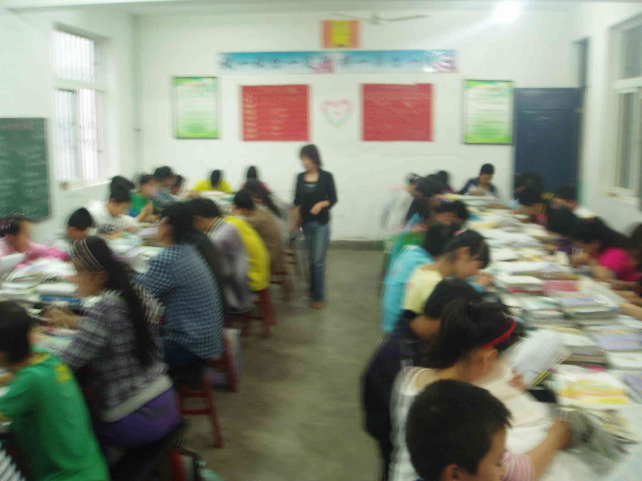 开始,下面的讲话声不绝于耳,大约20分钟后,似乎安静了许多,不要以为都在认真听讲,放眼望去,有人在睡觉,连书掉在地上都不知道,真香啊,有人在做题,倘若立刻老师出现在他(她)身边,还不感动地泪流满裳啊,可谓"抓紧时间学习",有人在拍桌子,不知道的还以为他(她)有病呢,还有人在讲话,不知道在讲什么有趣的事情,笑得人前仆后仰,"吓"得旁边的人不清,以为要打120……离下课还有10分钟,从这时,如果做个统计,大约每秒就有5个头向右旋转270,向上30,对准墙上的钟,然后再去干他(她)想干的事。如果政治课多了,这些人大概都要得扭脖子病,他们还是庆幸的,我真希望他们不会扭到脖子。