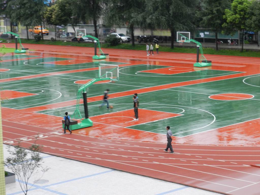 在路旁就是我们崭新的运动场,里面有一个环形跑道,还建了四个篮球场,一个羽毛球场,和一个排球场。同学们上课时有充足的场地进行活动。看到这些我们感到很兴奋,而且很感激,同时也想到自己应该努力学习,学到更多的知识才能对得起这美丽的校园,对得起努力工作的老师。