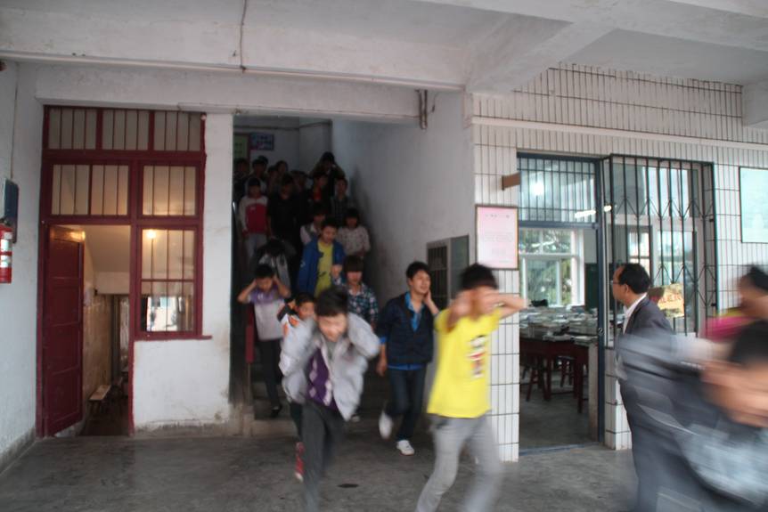 5月11日槐芽初中举行了校园地震应急演练活动。此次活动由槐芽初中政教处全面细致安排,召开全体教师大会安排活动具体实施方案,将全体教师分配到各个块口,以保证活动期间的学生安全。早上7点18分,只听一声哨响,全体师生双手抱头蹲在桌凳下,第二声哨响之后,各班学生在班主任老师的指挥下,紧张而有序的下楼直接奔向操场指定区域,整个演练过程持续1分58秒完成。本次校园应急演练活动的举行是对"5.12大地震"最好的纪念——"珍爱生命,关注安全",同时也提高了广大师生的防震安全意识。