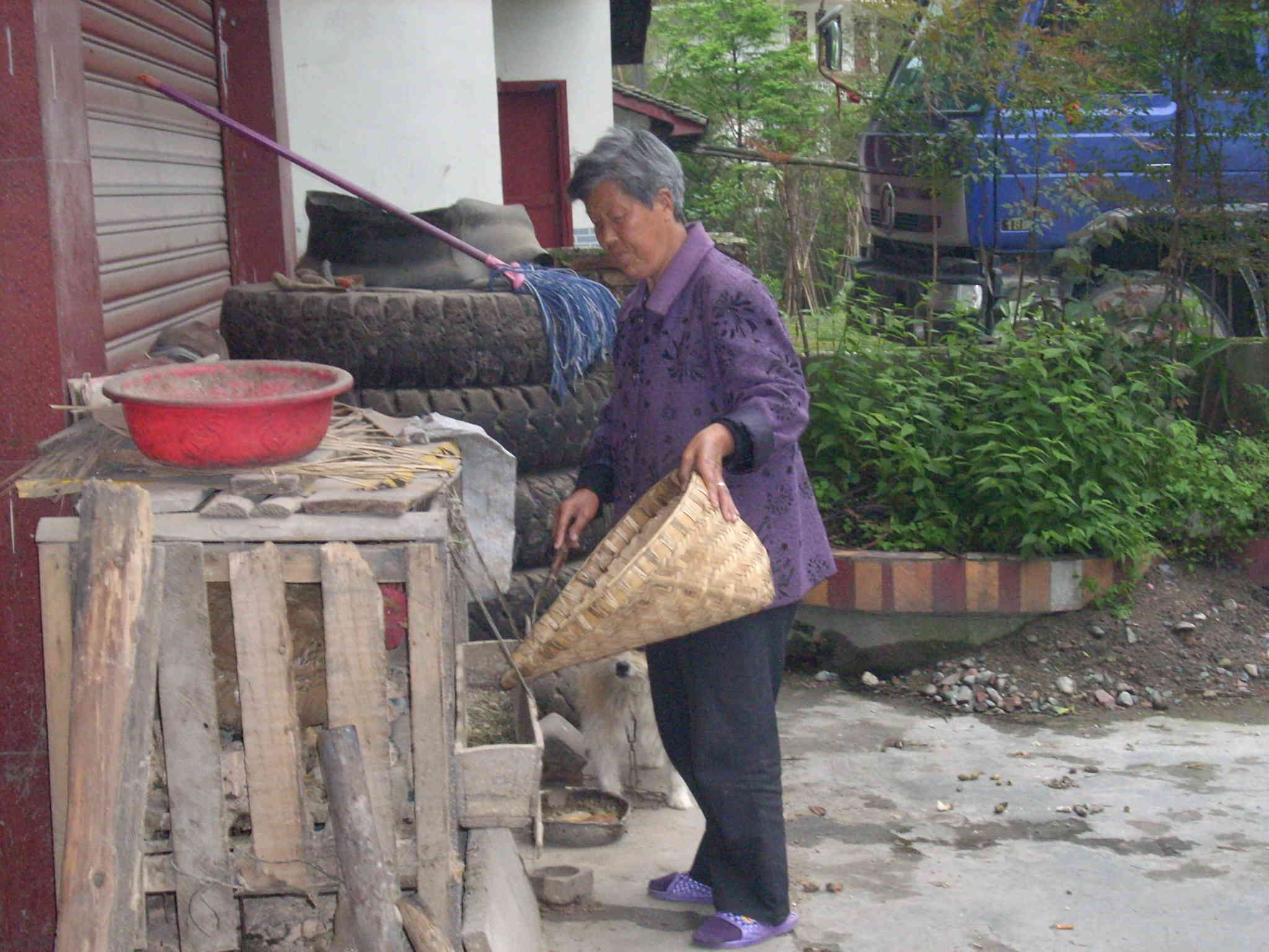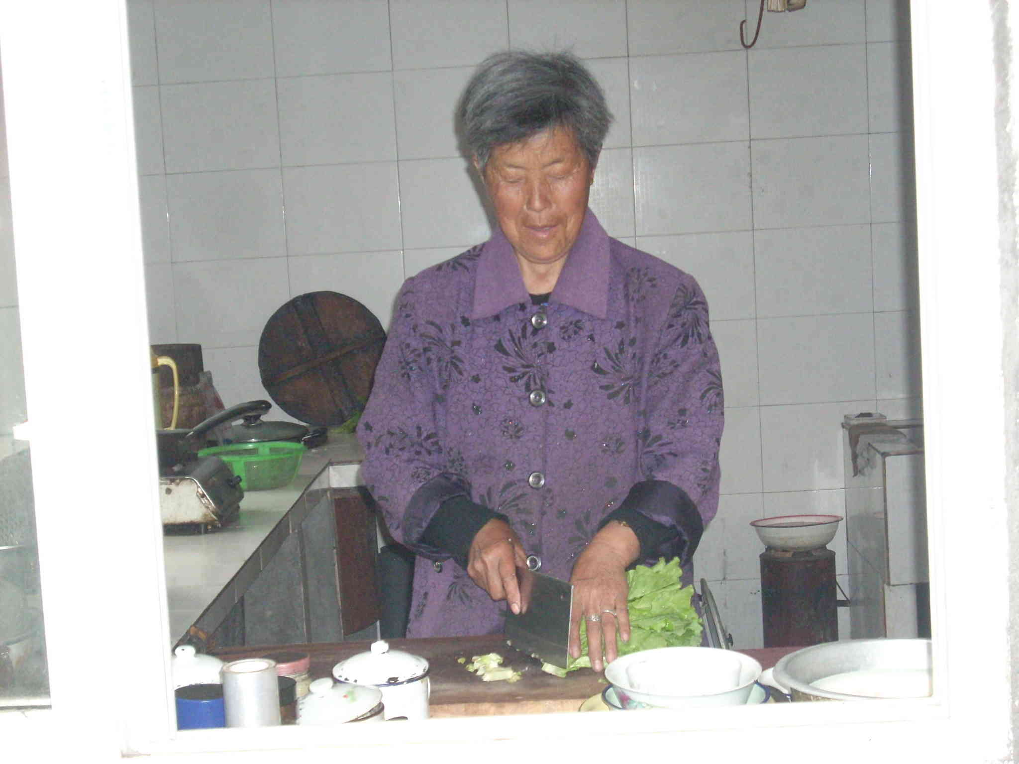 外婆很爱劳动,因为喂有鸡、猪,所以每天都要上山割猪草,回来才吃早饭。由于外公的腿脚不便 ,外面的农活都是外婆自己干,有时,外婆还要做饭、洗碗等。