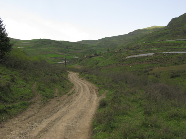 村里,用沙子铺成的路,砖建成的房屋,家家户户都想贴在半山腰,一个接着一个,远远望去好像楼层。山上牛羊成群,悠然自得,树木在风中摇摆歌唱,多么宁静祥和啊。