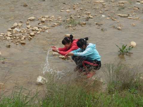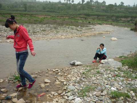 我们踏着溪水中的青石来到河流中,手伸向水中,水是如此清凉。水从我的手里慢慢流去。我们决定打水仗。一起用手把水向对方泼去,这时就看谁被水淋得像个落汤鸡,这也是我们的童真。被清凉的水泼中,也是一件幸福的,至少有朋友一起开心一起快乐。