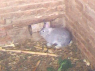 之后的几天,兔子一直用毛把兔洞门封着,我按捺不住自己的好奇心,用小棒把兔毛挑开了。就在这时,兔妈妈一下子扑了上来,疯狂的撕咬着木棒。爸爸告诉我窝里一定有小兔子。于是我便再没打扰它们。又过了几周,小兔子从窝里跑了出来,我终于亲眼目睹了这小兔子。再过几周它还会再下一窝小兔子。