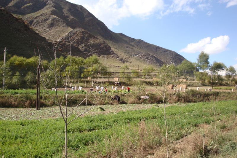 当我向父母那边望去,他们开辟的"道路"比我的长得多,他们也弄的汗流浃背,可脸上洋溢着幸福的微笑。哦!那是因为美丽而又肥沃的土地回报了人们丰硕的收获。
