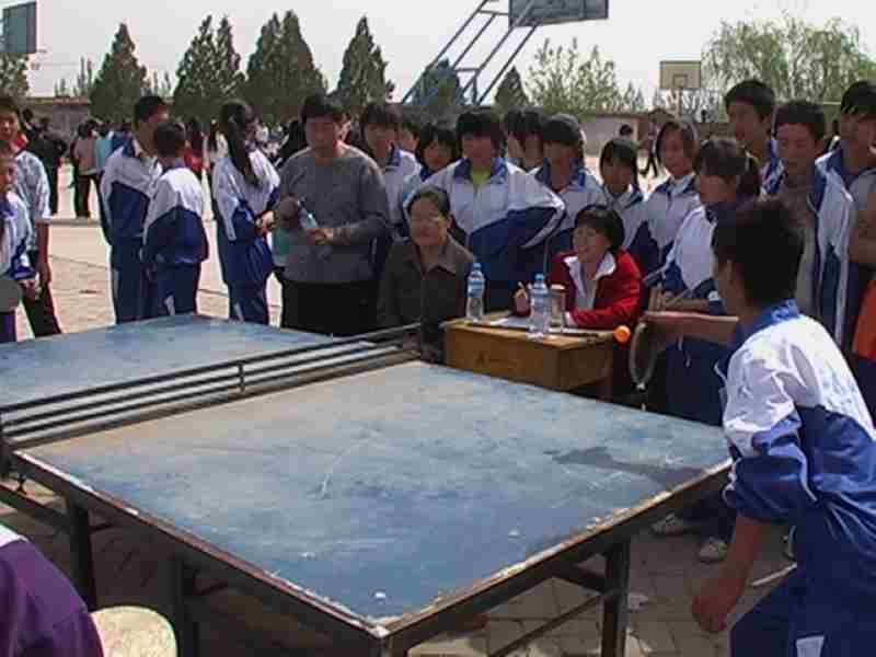 乒乓球赛场上,我们班和二班正在打乒乓球,一开场人们班的王飞同学打得很猛,刚一开始就连得5分,这可激发了二班同学的斗志,他使劲地也打过一球,可惜那球来势太猛,王飞没接住。王飞也不示弱,给了对方一个扣球,果不其然,对方也没接住。王飞同学这时更有信心了,连发几个扣球,对方一个也没接住,看这来势,对方已无招架之力,再加上我们的呐喊助威,对方胆颤地丢下球拍,哈哈哈……我们赢了,一片欢笑声在乒乓球场上散开。