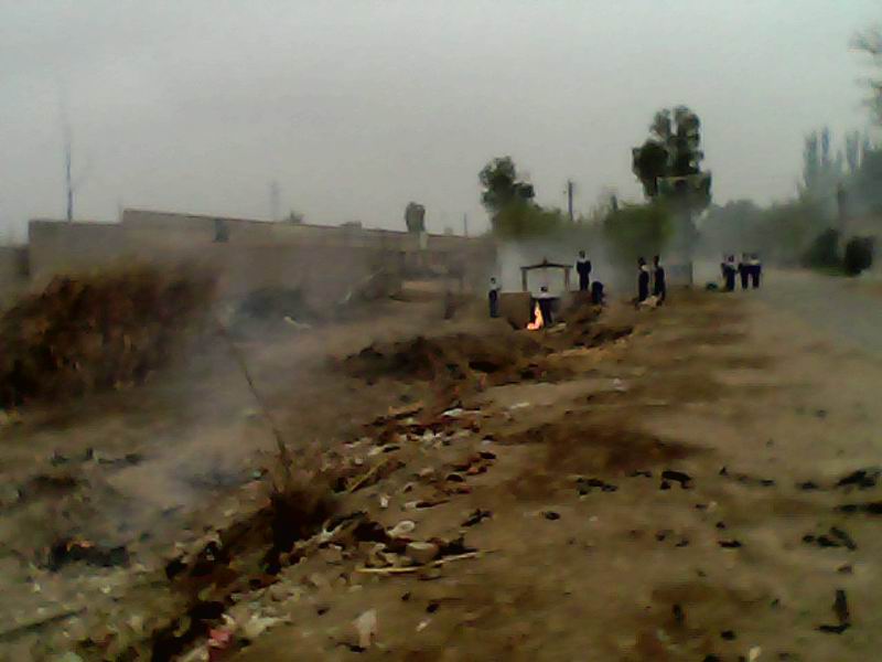最后来到学校附近的黑山沟,尽管同学们都很累,大家还是积极地捡完这里的垃圾。对垃圾进行分类处理,该卖的卖,该烧的烧。为了避免意外的事情发生,每个火堆旁边都留下了两三个同学进行蹲守,直到火完全熄灭了,再埋上土,才算完成任务。