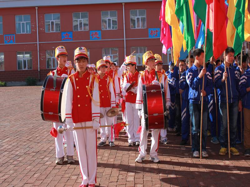仪仗队的同学穿上红白相间的衣服,戴着威武的帽子,别提有多帅了!他们有的手里拿着镲,有的背上背着鼓,有的举着五颜六色的彩旗,排着整齐的队伍整装待发。