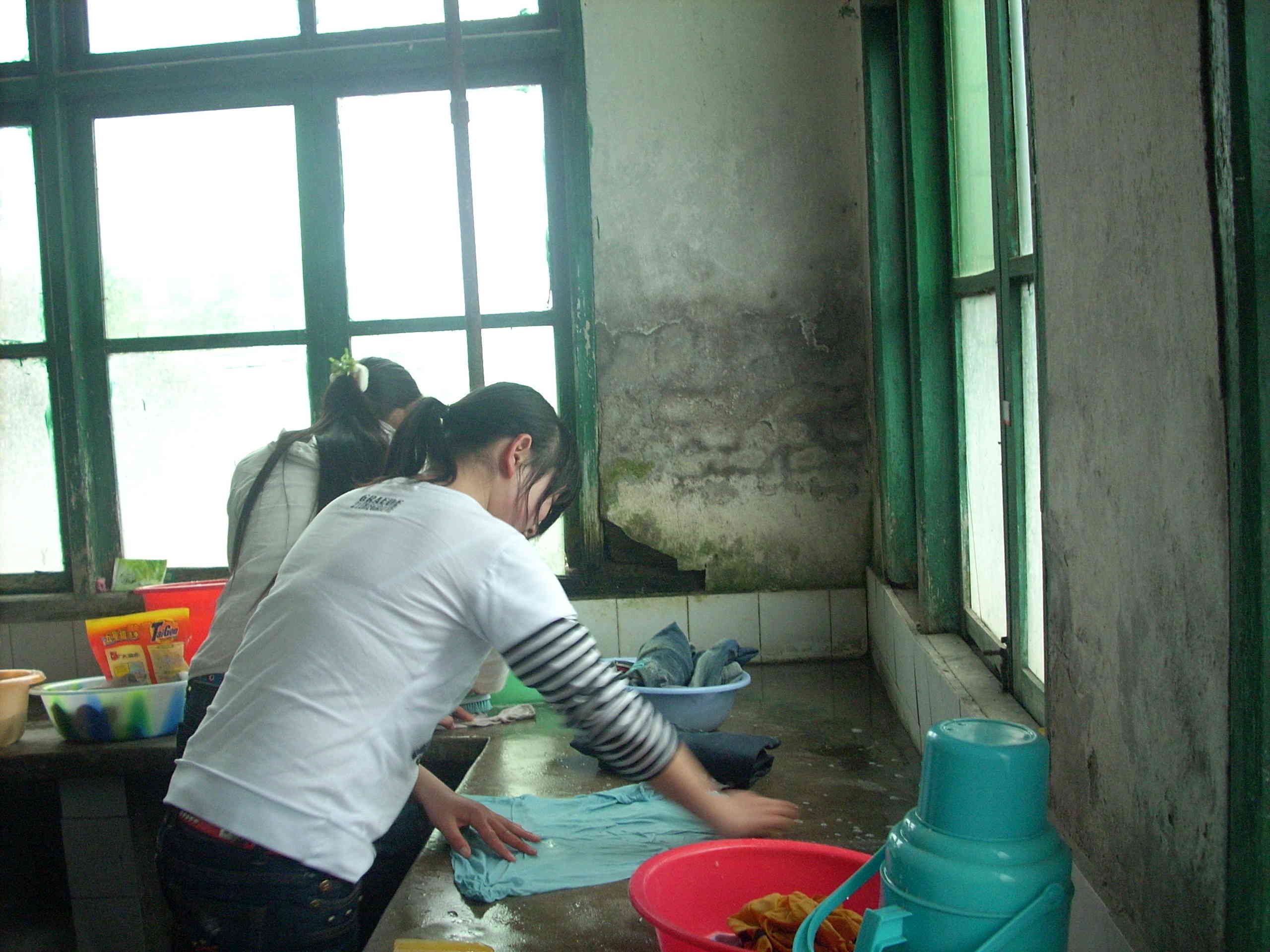 我正想休息呢,突然想到我的衣服还没洗,学校里虽然有洗衣房,但是每件衣服要收一块钱,我们都是来自农村的孩子,舍不得花钱,自己以前在家里天天做这些,所以自己的衣服自己洗.