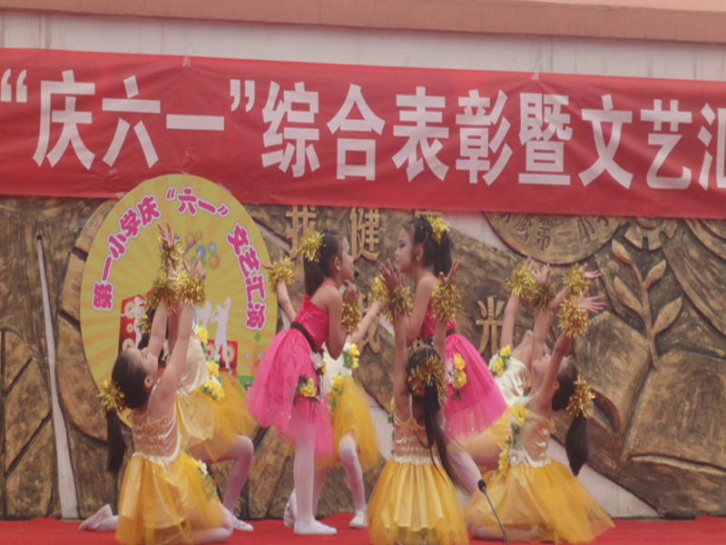 首先上场的是一(1)班她们穿着五颜六色的漂亮花衣服一个个表现的很突出,很活泼、可爱。每个人脸上都挂满笑容。接二连三上场的一个比一个好,到了我们班的时候,她们上去了,一个个跳得非常好看。