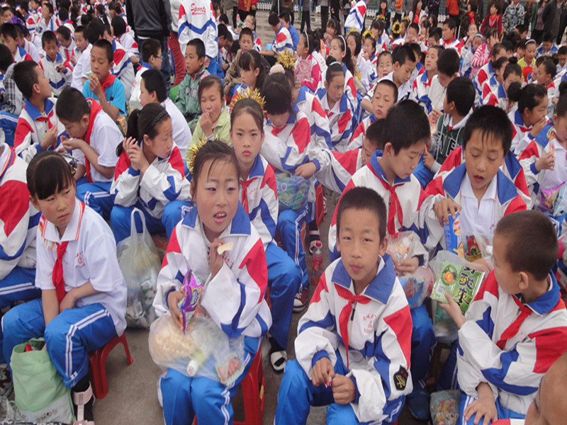 我们带了小板凳和自己买的零食,来到操场上看老师和学生们自编自演的节目。每个班都表演了一个很好看的节目,我们看得都很认真,我们太开心了。