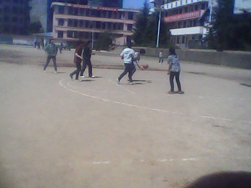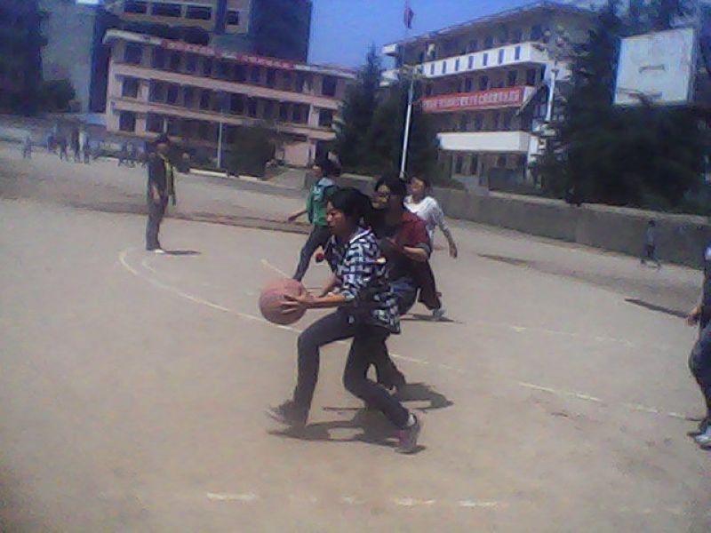 学校里组织了校篮球队和班上也组织班级篮球队;许多同学积极的报名参加,而我只能站在一旁为他们呐喊助威。瞧,一个高大的男生接过球,站在离篮板很远处,使尽全身的力气将球一扔,哇!好球,既然进了一个空心篮,其它队员跟着一阵欣悦与掌声。接着,球员们在这小小的篮球场上发挥着他们各自的才能。