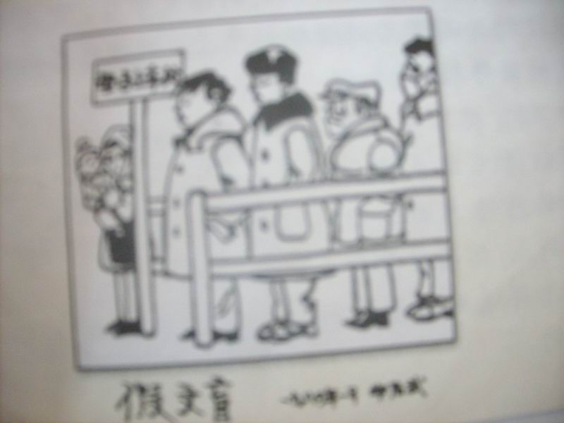 漫画讲的是:在公共汽车站牌处,标着一个"母子上车处"的牌子,在牌子旁边却站着四五个高大威武的男人,他们对牌子视而不见,大模大样的站在那儿,而真正需要关怀的母子却被挤到了一边,那四个男人望也不望一下那对母子,我不禁想大声喊:"你们尊老爱幼的美德哪儿去了?"他们也不是文盲,一个个衣冠楚楚,一看就知道是有文化的人,不会不认识牌上那几个字吧,他们知道,在"母子上车处"能得到优先上车的特权,所以,他们不顾尊老爱幼的道德,假扮文盲,这样他们就可以安心的在那儿等车了。