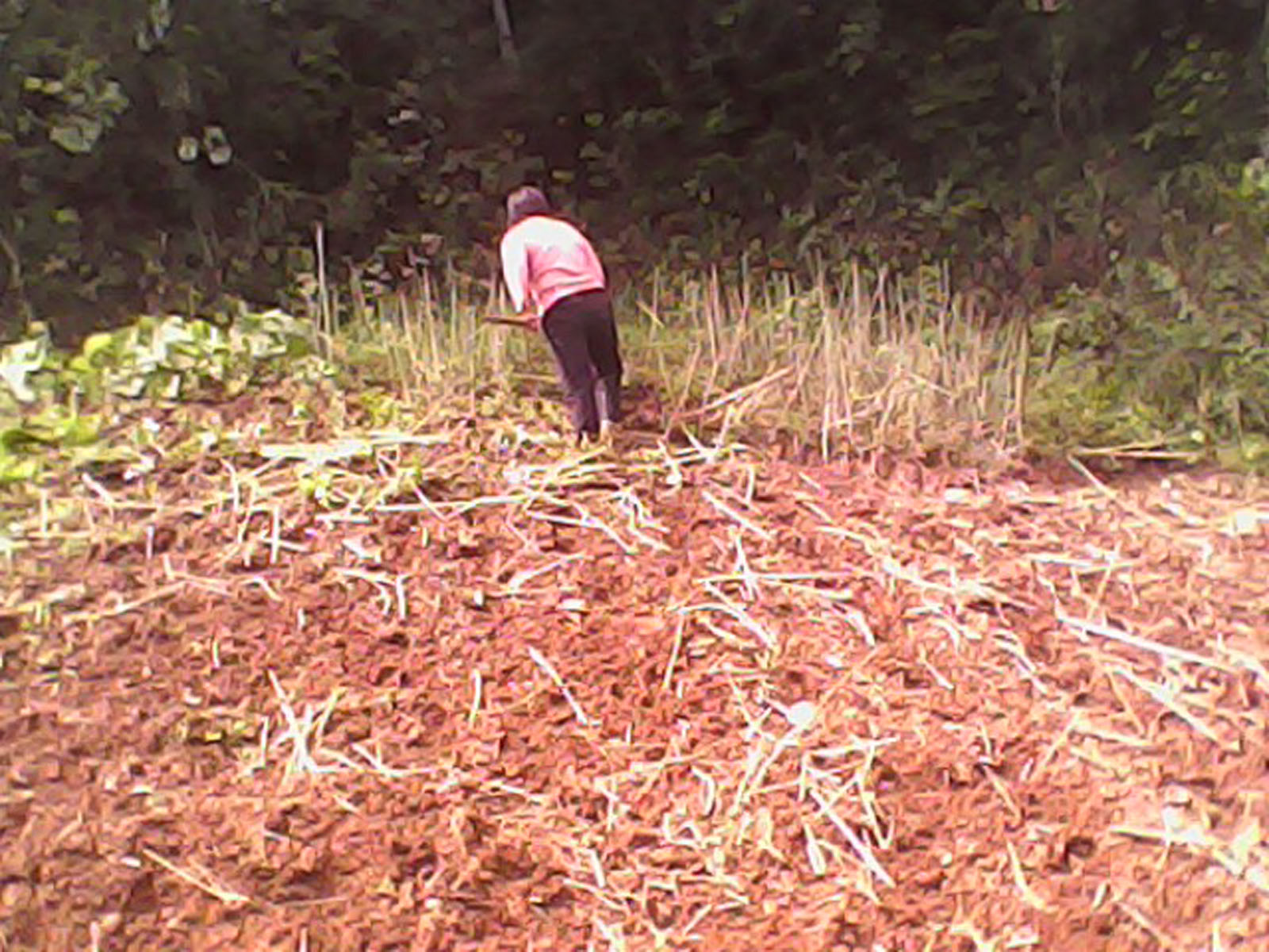 种地,由于地是坡状形,只能用锄头一下一下的挖,妈妈的辛苦只有自己的孩子知道,我种黄豆的节日来了,睡到刚种上,有得种黄豆了,不管怎样的天气,妈妈都那么辛苦希望看到照片的人不要笑,想想你妈妈是干什么的。