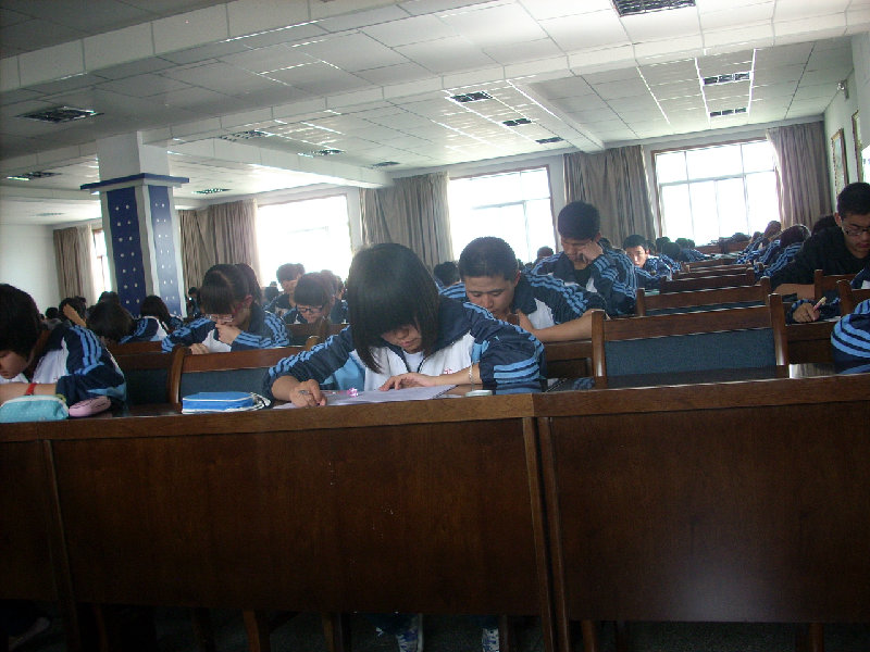我们做在教室里忐忑不安却又习以为常。搞不懂为什么每个月都要考试,浪费时间!