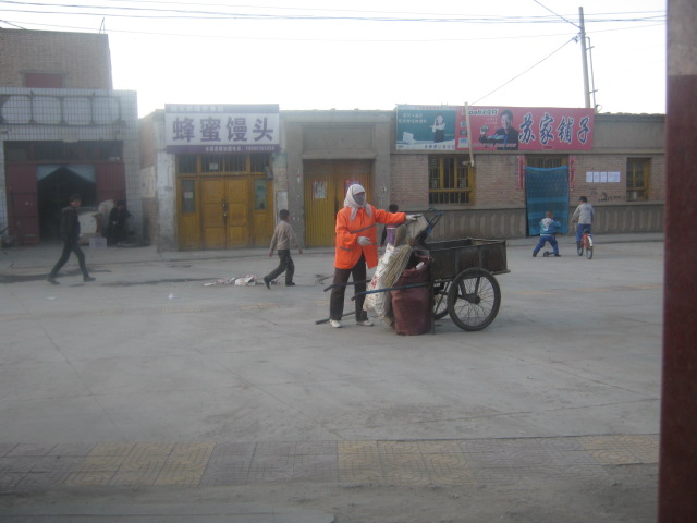 "哗啦,哗啦"大清早谁在扫地啊?我揉着惺忪的双眼走到窗前,向发出声音的地方望去。噢!原来是两个清洁工。我静静的伫立在窗前,凝视着她们:她们仔细的把各种垃圾扫成了一小堆一小堆。忽然一阵凉风扑面而来,我打了个冷颤,想去房间拿件衣服穿上。转念一想,这阵风不会把垃圾吹散了吧?我便急忙望去,果然不出我所料,原本干净的地面变得更加凌乱。