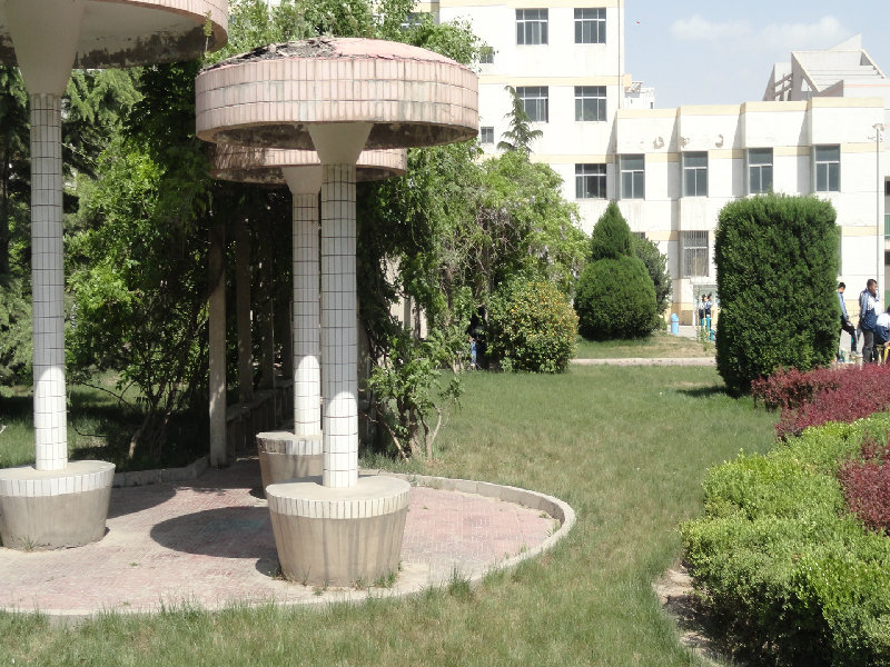 草坪上的枯草早已被人铲除,新发的嫩芽也已铺满整片。凉亭上爬山虎早早地爬到了顶上,又为大家带来一片绿荫。