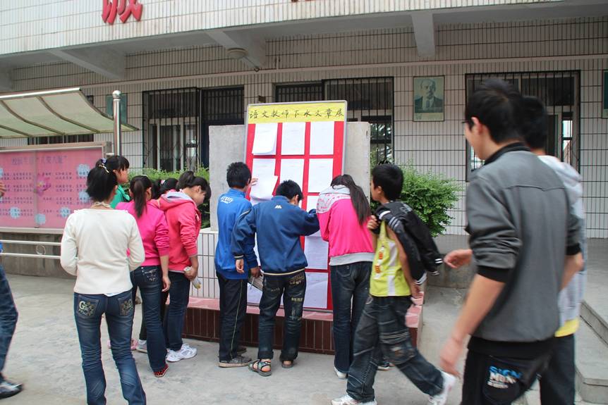 6月11日槐芽初中开展了以校本研修为主题语文教师下水文章展览活动。本次下水作文共收集15篇教师的文章,主题鲜明,立意深刻,在师生中反响良好,掀起了槐芽初中建设"书香型"校园的高潮。