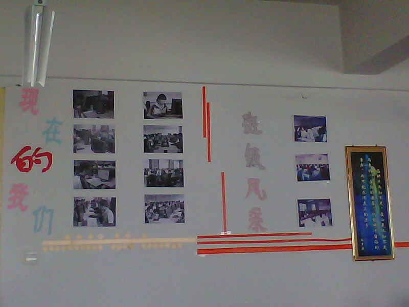 瞧见这些墙上的东西了吗?这都是她的杰作。她除了上课还喜欢不停地捯饬机房。机房里里外外被她弄得花里胡哨的,听她说学校的领导们还挺喜欢的,有什么检查就把领导们带到我们机房参观。oh,my god!